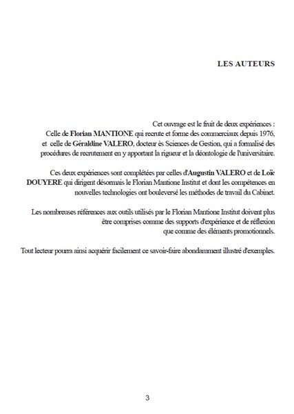 Depuis 1976, Florian MANTIONE est un provocateur. Il nous provoque quand il affirme que le recrutement d’un vendeur n’est pas un problème de candidat mais la résolution d’un problème d’organisation commerciale. Il nous provoque quand il claironne qu’il n’est pas un recruteur mais un conseil en organisation. Il nous provoque quand il ironise en affirmant que lui ne vend pas de CV mais présente des hommes et des femmes avec leur mode d’emploi. Il nous provoque quand il ose affirmer qu’il sélectionne ses clients en fonction de la faisabilité de la mission de recrutement.